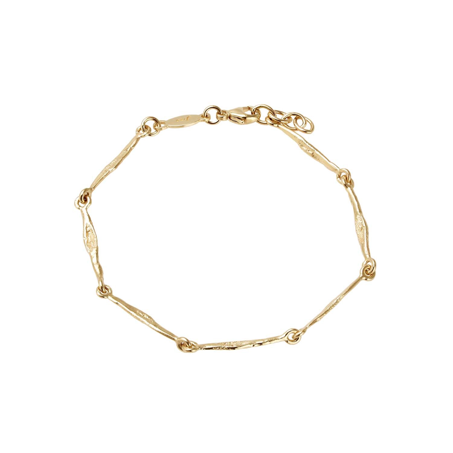 Armbandið er handsmíðað úr 14 karata gulli. Lengd armbandsins er stillanleg.