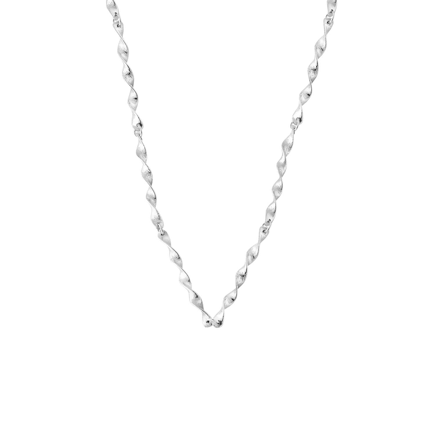 Hálsfestin er handsmíðuð úr rhodiumhúðuðu silfri.