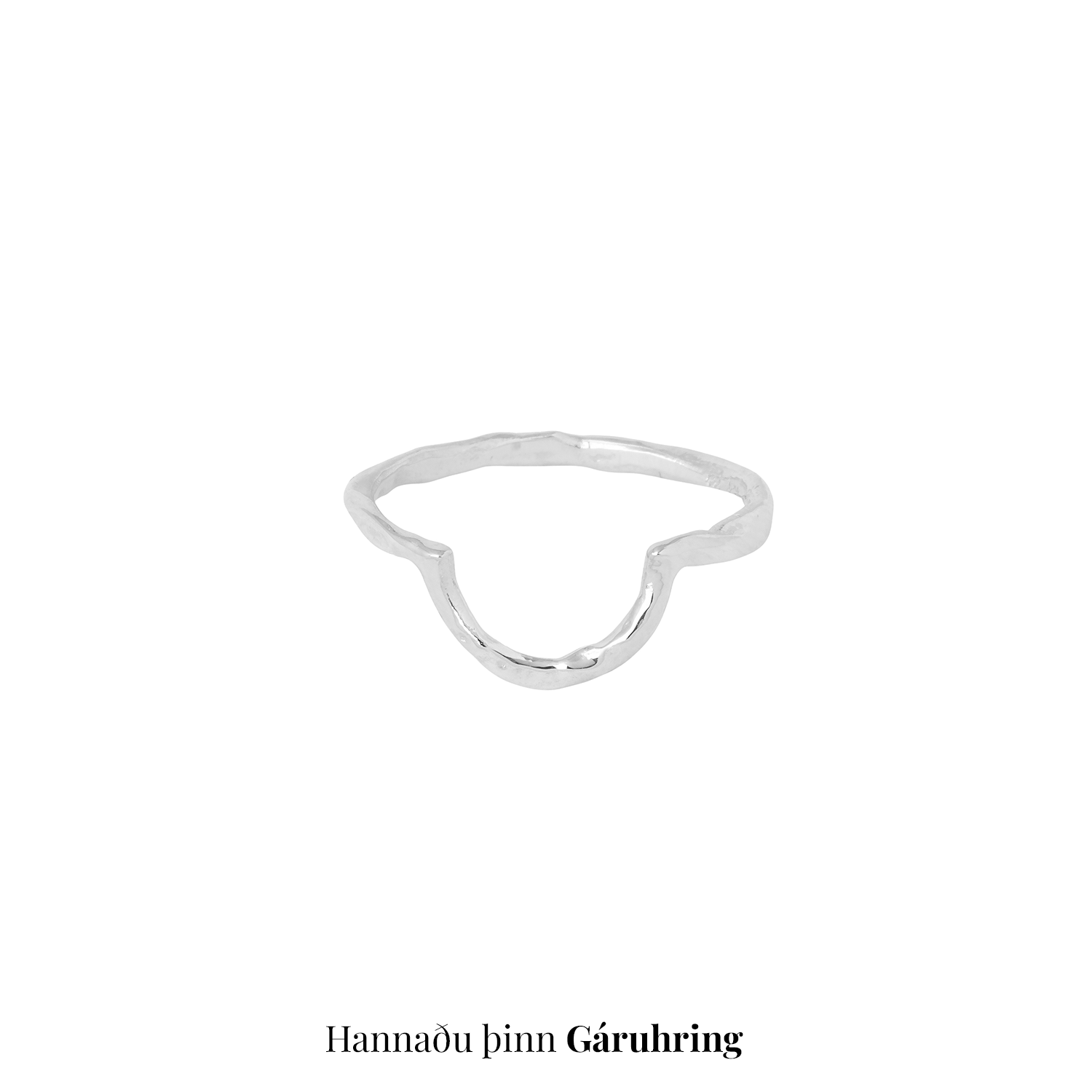Hringurinn er í Gárulínu Jens og er handsmíðaður úr rhodiumhúðuðu silfri með safír steini. Hringurinn er mjög nettur, um 1 mm á breidd.