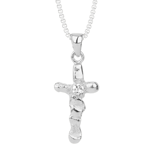 Silfurkross með cubic zirconia steini